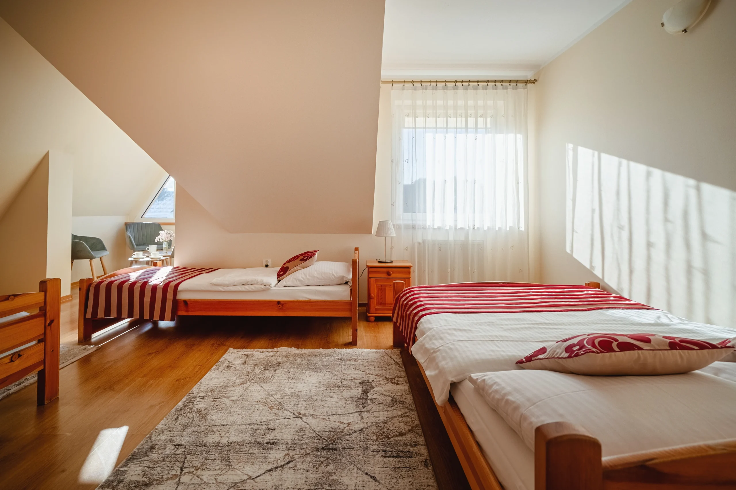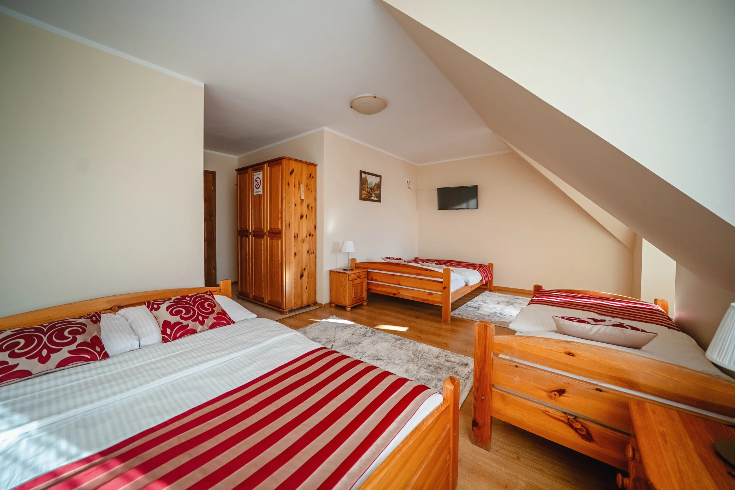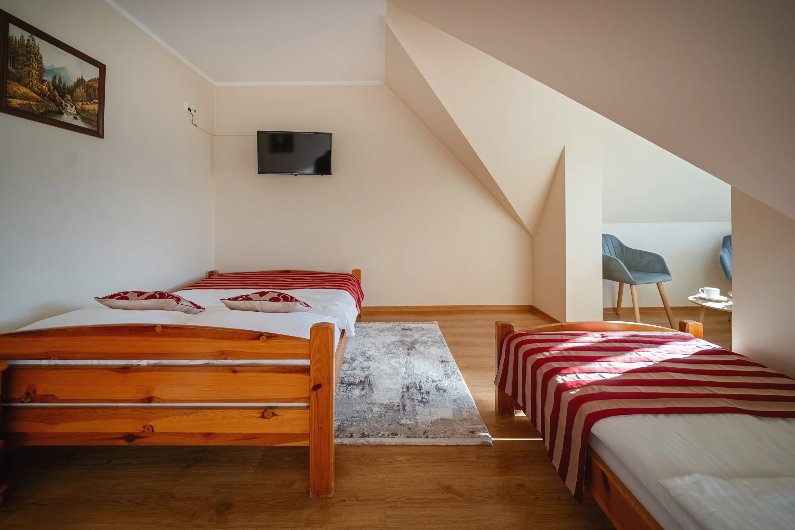 Pokój oferuje wygodne łóżka, funkcjonalne wyposażenie oraz dostęp do udogodnień obiektu, dzięki czemu pobyt jest komfortowy i bezproblemowy niezależnie od pory roku. To doskonały wybór dla osób ceniących wygodę, czystość i spokojną górską atmosferę.