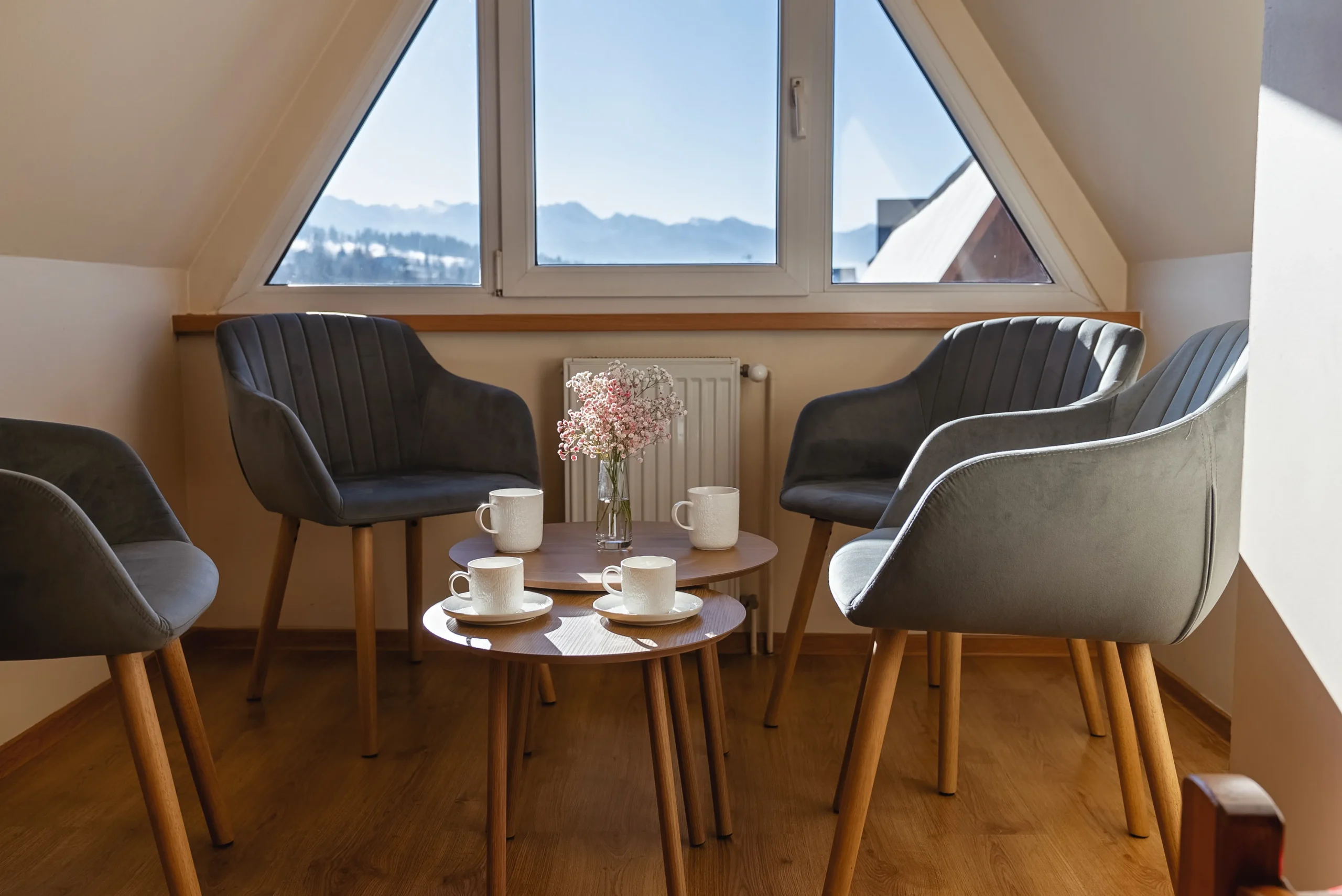 Z okien pokoju rozpościera się urokliwy widok na góry oraz okolicę Białego Dunajca. To idealne miejsce, by rozpocząć dzień przy filiżance kawy lub zakończyć go chwilą relaksu po aktywnym dniu w Tatrach.