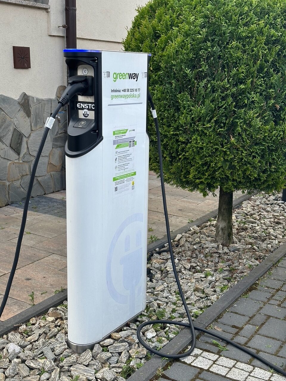Miło nam poinformować, że na terenie naszego obiektu dostępna jest stacja ładowania pojazdów elektrycznych sieci GreenWay.